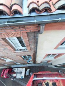 APCO Toiture est intervenue récemment en plein centre-ville de Toulouse pour un chantier de rénovation de la zinguerie, incluant la remise en état d’une descente d’eau pluviale. Sur les bâtiments anciens toulousains, la gestion des eaux de pluie est essentielle pour garantir la protection des façades en briques, éviter les infiltrations et préserver la structure du bâtiment.